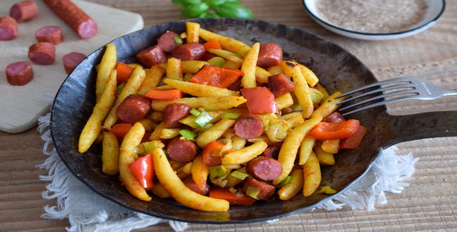 - Mit Balsamico Essig abschmecken und das Paprikagemüse mit dem erwärmten Gulasch mischen.